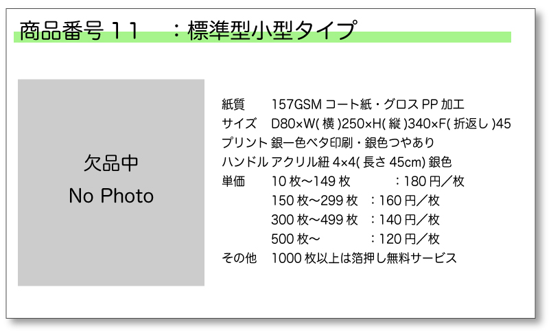 既存製品は以下の通りです。商品番号をご確認のうえ、必要枚数をお問合せフォームよりご注文下さい。